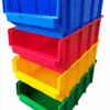 Pojemnik magazynowy wykonany jest z regranulatu PP czyli pojemniki nie są w takim samym kolorze jak w I gatunku. Odcień nie jest powtarzalny, występują one głównie w kolorze niebieskim, czerwonym oraz zielonym.