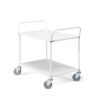 Podwyższona krawędź z jednej strony półki zapobiega spadaniu przedmiotów, gdy półka jest ustawiona pod kątem lub podczas przemieszczania wózka. Podwyższoną krawędź można umieścić z różnych stron, a półkę na dowolnie wybranej wysokości.