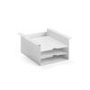 Posiada trzy przegrody, w których można umieścić na przykład papier A4 i leżące na płasko teczki. Można go również wykorzystać do przechowywania telefonów komórkowych, słuchawek, długopisów i innych rzeczy, których w danej chwili nie używasz, ale chcesz mieć pod ręką.