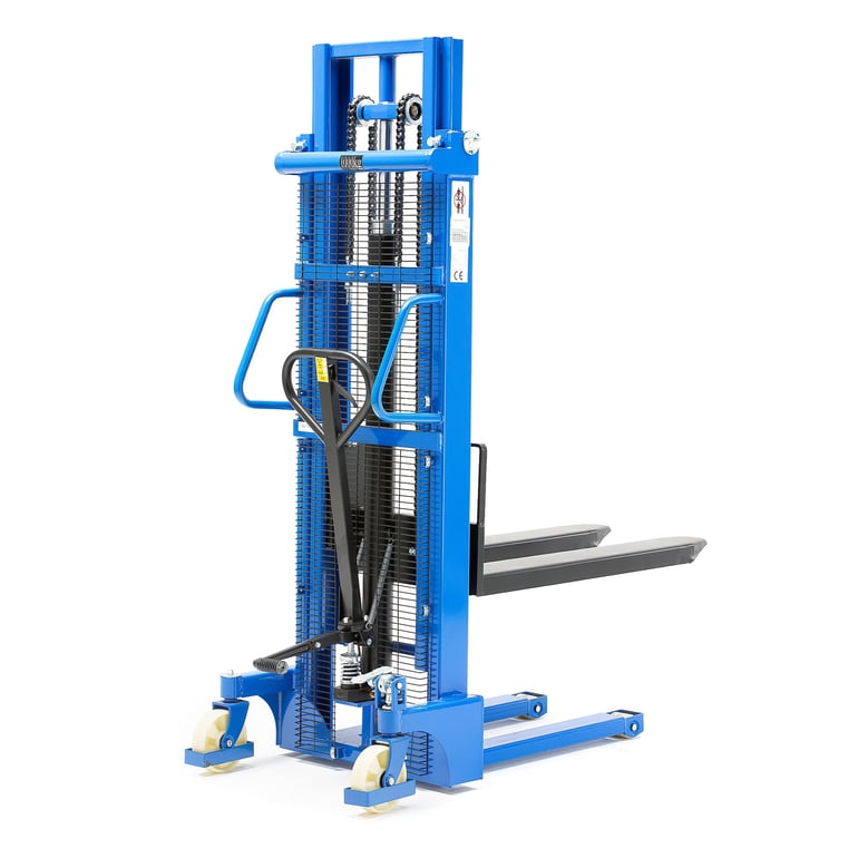 Ręczna sztaplarka do wszechstronnego zastosowania. Wygodne pompowanie przy pomocy uchwytu i płynne opuszczanie ładunku. Lekko toczące się koła ułatwiają transport ładunków na gładkich i równych powierzchniach. Posiada praktyczny hamulec nożny. Ręczna sztaplarka ułatwia układanie palet w stos w magazynie. Stertownika można także używać jako wózka paletowego, stołu podnoszącego itp. Łatwe manewrowanie i wygodne zatrzymywanie dzięki hamulcowi nożnemu.