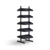Ten dwustronny stojak na obuwie jest wyposażony w dwie ramy w kształcie litery T i stężenia, które są łatwe w montażu. Perforacje w ramie ułatwiają regulację odstępów między półkami i umożliwiają zmianę ich rozmieszczenia w zależności od potrzeb.