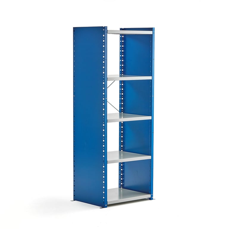 Regał MIX, moduł podstawowy, 1740x600x500 mm, zamknięta rama końcowa, niebieski, szary