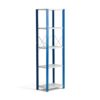 Moduł podstawowy wykonano z blachy stalowej lakierowanej proszkowo. Wykończenie lakierem proszkowym zapewnia trwałość oraz odporność na zarysowania i intensywne użytkowanie w trudnych środowiskach. Półki można zamontować zgodnie z wymaganiami i przestawiać w górę lub w dół w odstępach co 50 mm. Do montażu nie potrzeba narzędzi – wystarczy zahaczyć półki na wybranej wysokości. Maksymalne obciążenie każdej półki wynosi 150 kg przy równomiernym rozmieszczeniu ładunku. Moduł podstawowy dostarczamy ze stężeniem tylnym oraz stężeniami bocznymi dla dodatkowej stabilności. Słupki boczne wyposażone są w stopki, które pozwalają zakotwić regał w podłodze.
