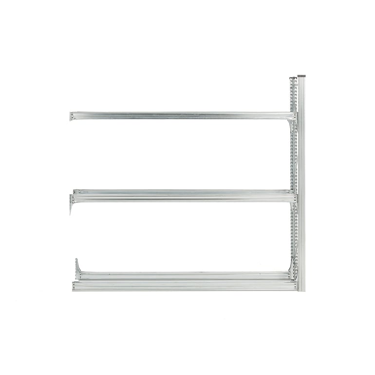Moduł dodatkowy regału na opony z trzema poziomami. Stwórz spersonalizowane rozwiązanie, dodając jeden lub więcej modułów dodatkowych do modułu podstawowego. Możliwość rozbudowy systemu przy pomocy modułów dodatkowych sprawia, że potrzeba tylko jednego pełnego modułu podstawowego. Takie rozwiązanie oszczędza miejsce oraz zmniejsza liczbę słupków potrzebnych do stworzenia systemu. Moduł dodatkowy wykonany został z galwanizowanej stali, co zapewnia trwałość i długowieczność. Regał mieści około 27 opon na trzech poziomach, a każdy poziom wytrzymuje maksymalne obciążenie 500 kg.