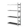 Moduł dodatkowy regału TRANSFORM z półkami dopuszczonymi do kontaktu z żywnością. Jest dostarczany ze wstępnie zmontowaną ramą, a dalszy montaż nie wymaga śrub ani wkrętów. Nadaje się do użytku w chłodniach. Dzięki funkcjonalnym modułom dodatkowym łatwo rozbudujesz system regałów do żądanej szerokości. Lekki moduł dodatkowy wyposażono w jedną ramę, co znacznie ułatwia montaż. Półki można zawiesić na dowolnej wysokości ramy, a drugi koniec zamocować do słupka modułu podstawowego. Montaż bez śrub i narzędzi! Taka konstrukcja oznacza, że nie są wymagane żadne dodatkowe słupki, a regały są połączone ze sobą, co zapewnia dodatkową stabilność.