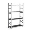 Ramy końcowe są wstępnie zmontowane w momencie dostawy, co ułatwia złożenie systemu regałów. Wystarczy zawiesić półki na wybranej wysokości między słupkami! Ułatwia to konfigurację regału zgodnie z potrzebami. Dokup dodatkowe półki lub rozbuduj regał przy pomocy modułów dodatkowych.