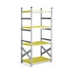 Prezentowany moduł podstawowy posiada dwie ramy ze stężeniami bocznymi i cztery półki. Półki z możliwością umieszczenia na dowolnej wysokości umożliwiają łatwe przemieszczanie w górę i w dół zgodnie z potrzebą.