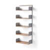 Smukłe półki i szyny zapewniają prosty i ponadczasowy wygląd. Półki posiadają krawędzie na krótszych bokach oraz tylną listwę zabezpieczającą przed spadaniem przedmiotów. Półki zamontowane są na perforowanych szynach nośnych, co ułatwia ich przesuwanie, jeśli zajdzie taka potrzeba.