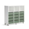 Regał szkolny CASPER, 12 szuflad, 3 górne przegrody, biały, błękitny
