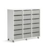 Umieść wzdłuż ściany lub użyj jako przegrody w pomieszczeniu! Można też ustawić obok ławki ucznia, aby zapewnić łatwo dostępne miejsce do przechowywania. Koła umożliwiają łatwe przemieszczanie w ramach potrzeb. Dwa koła oferują możliwość zablokowania, aby utrzymać mebel bezpiecznie w miejscu.