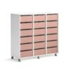 Mobilny regał do przechowywania papieru, ołówków, książek i innych materiałów szkolnych. Oferuje kilka elastycznych szuflad mieszczących przedmioty w formacie A4. Wykonany z wytrzymałego laminatu i wyposażony w blokowane koła. Ten mobilny mebel jest idealny do przechowywania osobistych rzeczy w salach lekcyjnych. Kompaktowy rozmiar, który zapewnia dużo miejsca do przechowywania na niewielkiej powierzchni. Warto dać każdemu uczniowi własną szufladę do przechowywania zeszytów do pisania, książek, długopisów itp.