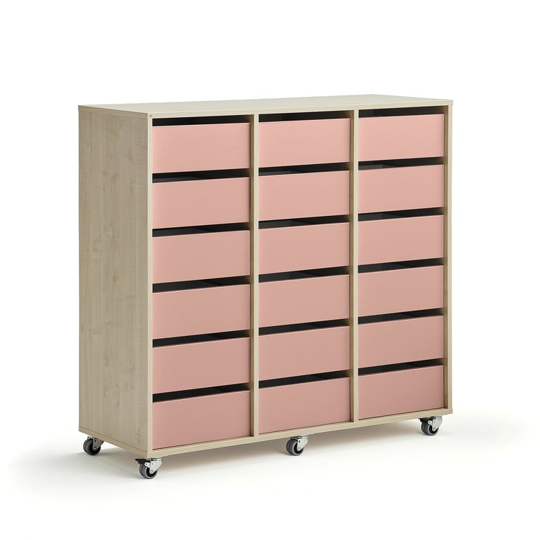 Regał szkolny CASPER, 18 szuflad, brzoza, ciemnoróżowy