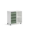 Mobilny mebel do przechowywania papieru, ołówków, książek i innych materiałów szkolnych. Oferuje otwarte półki i funkcjonalne szuflady na papier w formacie A4. Wykonany z wytrzymałego laminatu i wyposażony w blokowane koła. Ten mobilny mebel jest idealny do przechowywania osobistych rzeczy uczniów w salach lekcyjnych. Jego kompaktowa i pojemna konstrukcja umożliwia przechowywanie wielu rzeczy na małej powierzchni. Dzięki prostej konstrukcji może być używany w większości środowisk szkolnych.