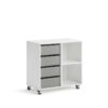 Mobilny mebel do przechowywania papieru, ołówków, książek i innych materiałów szkolnych. Oferuje otwarte półki i funkcjonalne szuflady na papier w formacie A4. Wykonany z wytrzymałego laminatu i wyposażony w blokowane koła. Ten mobilny mebel jest idealny do przechowywania osobistych rzeczy uczniów w salach lekcyjnych. Jego kompaktowa i pojemna konstrukcja umożliwia przechowywanie wielu rzeczy na małej powierzchni. Dzięki prostej konstrukcji może być używany w większości środowisk szkolnych.