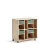 Mobilny mebel do przechowywania papieru, ołówków, książek i innych materiałów szkolnych. Regał wyposażono w otwarte przegrody, miejsca na foldery i inteligentne szuflady na papier w formacie A4. Wykonany z wytrzymałego laminatu i wyposażony w blokowane koła. Ten mobilny mebel jest idealny do przechowywania rzeczy uczniów w salach lekcyjnych. Kompaktowy rozmiar zapewnia dużo miejsca do przechowywania na niewielkiej powierzchni. Dzięki prostej konstrukcji może być wykorzystany w większości środowisk szkolnych.