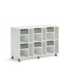 Mobilny mebel do przechowywania papieru, ołówków, książek i innych materiałów szkolnych. Regał wyposażono w otwarte półki, przegródki na foldery i inteligentne szuflady na papier w formacie A4. Produkt wykonany z wytrzymałego laminatu i wyposażony w koła z blokadą. Ten mobilny mebel jest idealny do przechowywania rzeczy uczniów w salach lekcyjnych. Jego kompaktowa i pojemna konstrukcja umożliwia przechowywanie wielu rzeczy na niewielkiej powierzchni. Dzięki prostej konstrukcji może być wykorzystany w większości środowisk szkolnych.