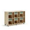 Mobilny mebel do przechowywania papieru, ołówków, książek i innych materiałów szkolnych. Regał wyposażono w otwarte przegrody, miejsca na foldery i inteligentne szuflady na papier w formacie A4. Wykonany z wytrzymałego laminatu i wyposażony w blokowane koła. Ten mobilny mebel jest idealny do przechowywania rzeczy uczniów w salach lekcyjnych. Kompaktowy rozmiar zapewnia dużo miejsca do przechowywania na niewielkiej powierzchni. Dzięki prostej konstrukcji może być wykorzystany w większości środowisk szkolnych.