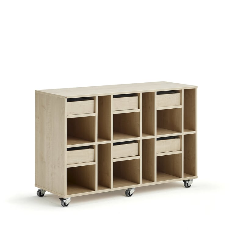 Regał szkolny CASPER, 6 szuflad, 12 przegród, brzoza