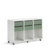 Posiada otwarte półki i elastyczne szuflady na papier, książki, ołówki i podobne materiały szkolne. Uczniowie mogą dzielić schowki lub kilka szuflad można przypisać poszczególnym uczniom. Idealnie sprawdza się również jako mebel do przechowywania dla całej klasy.