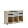 Posiada otwarte półki i funkcjonalne szuflady na papier, książki, ołówki i podobne materiały szkolne. Uczniowie mogą dzielić przegrody lub można je przypisać każdemu uczniowi z osobna. Mebel idealnie spełnia swoje zadanie również jako tradycyjna jednostka do przechowywania dla całej klasy.