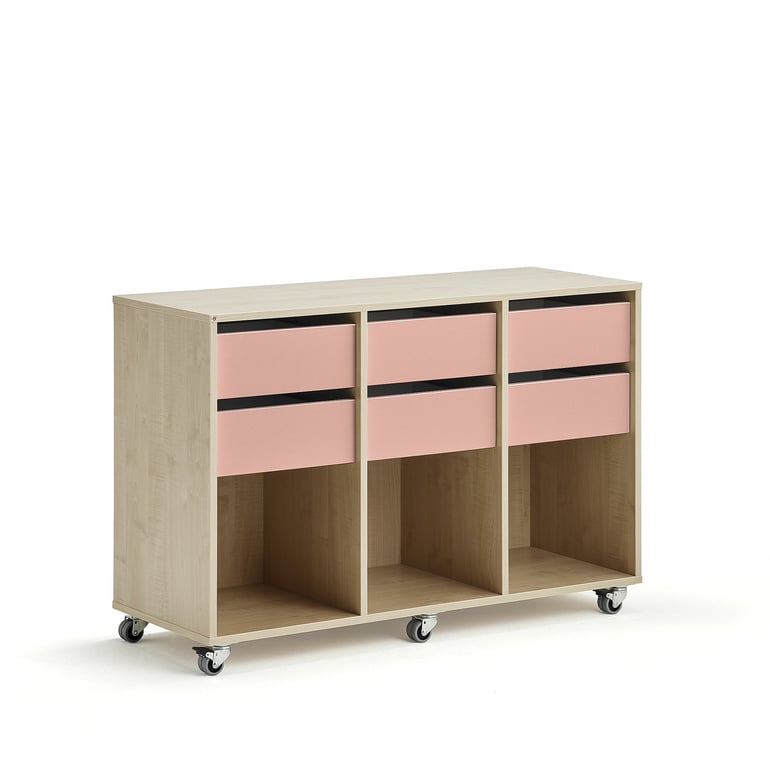Posiada otwarte półki i funkcjonalne szuflady na papier, książki, ołówki i podobne materiały szkolne. Uczniowie mogą dzielić przegrody lub można je przypisać każdemu uczniowi z osobna. Mebel idealnie spełnia swoje zadanie również jako tradycyjna jednostka do przechowywania dla całej klasy.