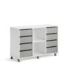 Posiada otwarte półki i funkcjonalne szuflady na papier, książki, ołówki i podobne materiały szkolne. Podziel schowki między uczniów lub przydziel każdemu uczniowi kilka szuflad. Mebel może być również wykorzystywany jako miejsce do przechowywania dla całej klasy.