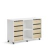 Posiada otwarte półki i funkcjonalne szuflady na papier, książki, ołówki i podobne materiały szkolne. Podziel schowki między uczniów lub przydziel każdemu uczniowi kilka szuflad. Mebel może być również wykorzystywany jako miejsce do przechowywania dla całej klasy.