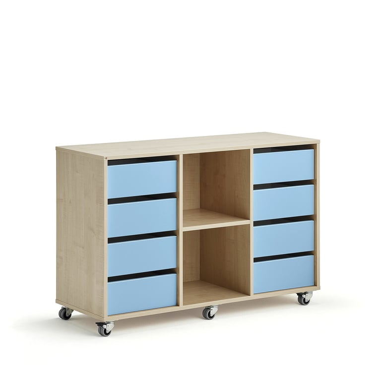Regał szkolny CASPER, 8 szuflad, 2 przegrody, brzoza, błękitny