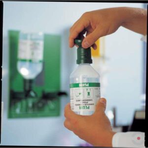 - Znajdujące się na butelce czytelne piktogramy z instrukcją przekazują najważniejsze informacje dotyczące płukania oczu w sposób prawidłowy i bezpieczny