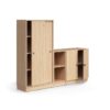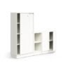 Ta praktyczna kombinacja mebli zapewnia wiele możliwości przechowywania dzięki szafie i regałowi. Wysoka szafa jest wyposażona w zamykane drzwi przesuwne, które zapewniają oszczędność miejsca.