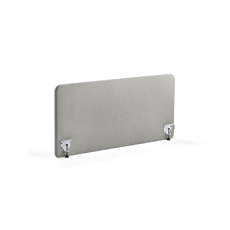 Ścianka biurkowa ZONE, białe uchwyty, 1400x650x36 mm, tkanina Hush, jasnoszary