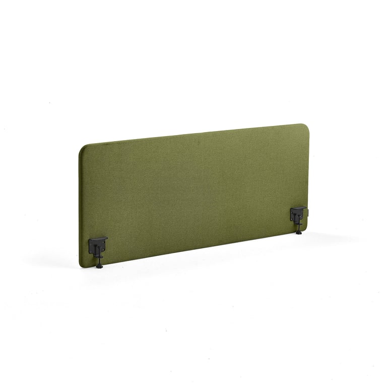 Ścianka biurkowa ZONE, czarne uchwyty, 1600x650x36 mm, tkanina Hush, zielony