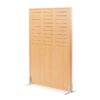 Ścianka podłogowa o właściwościach redukujących hałas. Podstawy i łączniki są sprzedawane osobno. Te praktyczne drewniane ścianki podłogowe pozwalają szybko wydzielać przestrzeń w pomieszczeniach. Są idealne do użytku w biurach typu open space, salach lekcyjnych, jadalniach, bibliotekach i innych środowiskach o wysokich wymaganiach dotyczących pochłaniania dźwięku. Ścianki podłogowe zapewniają elastyczność, są łatwe do przesuwania w razie potrzeby i stanowią budżetową alternatywę dla ścian stałych. Mogą być używane samodzielnie, ale można też łatwo połączyć kilka ścianek przy pomocy łączników.