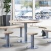 Siedzisko DOT posiada ramę ze sklejki drewnianej oraz nogi z okrągłych rur stalowych lakierowanych proszkowo na kolor srebrnoszary. Wypełnienie z zimnej pianki wysokoelastycznej sprawia, że mebel nie odkształca się i zapewnia dobre podparcie.