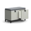 Szuflady poruszają się płynnie na prowadnicach i mieszczą materiały biurowe oraz inne niezbędne przedmioty. Mebel sprawdzi się w miejscach publicznych jako przegroda pomieszczenia, w szatniach jako siedzisko do zmiany butów. Znajdzie zastosowanie również w sali konferencyjnej. Kilka jednostek można połączyć, aby uzyskać jeszcze szersze rozwiązanie do przechowywania i przegrodę pomieszczenia.
