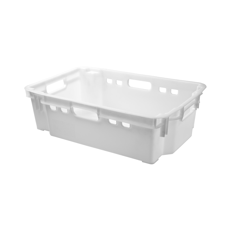 Pojemnik na mięso i jego prodroby. Skrzynka posiada atest do kontaktu z żywnością. Skrzynka B-180 to produkt przeważnie wykorzystywany jako skrzynka DO GŁĘBOKIEGO MROŻENIA na mięso, drób czy do transportu wędlin.