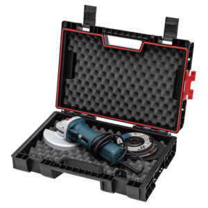 Qbrick System PRO Toolcase to uniwersalny i modułowy pojemnik na elektronarzędzia. Pojemnik ten gwarantuje bezpieczeństwo przechowywania oraz przenoszenia drogich i specjalistycznych narzędzi. Wyposażony jest w podwójną piankę ochronną, a wytrzymałe, poliamidowe zapięcia dodatkowo zabezpieczają jego zawartość. Zamontowana w pokrywie uszczelka zapewnia ochronę przed wilgocią oraz pyłem.