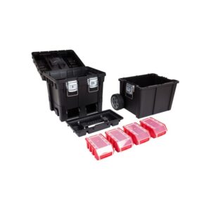 Skrzynka narzędziowa na kółkach Wheelbox HD Compact z pojemnikami.