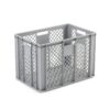 Pojemnik z tworzywa sztucznego przeznaczony do kontaktu z żywnością, z perforowanymi bokami, podstawą i możliwością sztaplowania. Wykonany z szarego polietylenu dopuszczonego do kontaktu z żywnością. Materiał oferuje dużą gęstość, co sprawia, że pojemnik jest wytrzymały i sztywny.