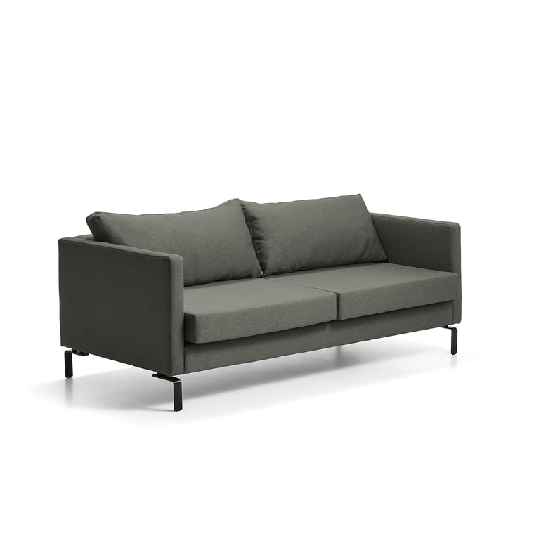 Sofa posiada zintegrowane podłokietniki i prosty, elegancki design. Rdzeń poduszek siedzisk składa się z zimnej pianki, wysoce elastycznego materiału, który zapewnia dobre podparcie i zachowuje swój kształt. Cała sofa jest pokryta trwałą tkaniną, która spełnia wymagania certyfikacyjne Möbelfakta. Dodatkowo jest dostępna w różnych kolorach.