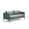 Sofa posiada zintegrowane podłokietniki i prosty, elegancki design. Rdzeń poduszek siedzisk składa się z zimnej pianki, wysoce elastycznego materiału, który zapewnia dobre podparcie i zachowuje swój kształt. Cała sofa jest pokryta trwałą tkaniną, która spełnia wymagania certyfikacyjne Möbelfakta. Dodatkowo jest dostępna w różnych kolorach.