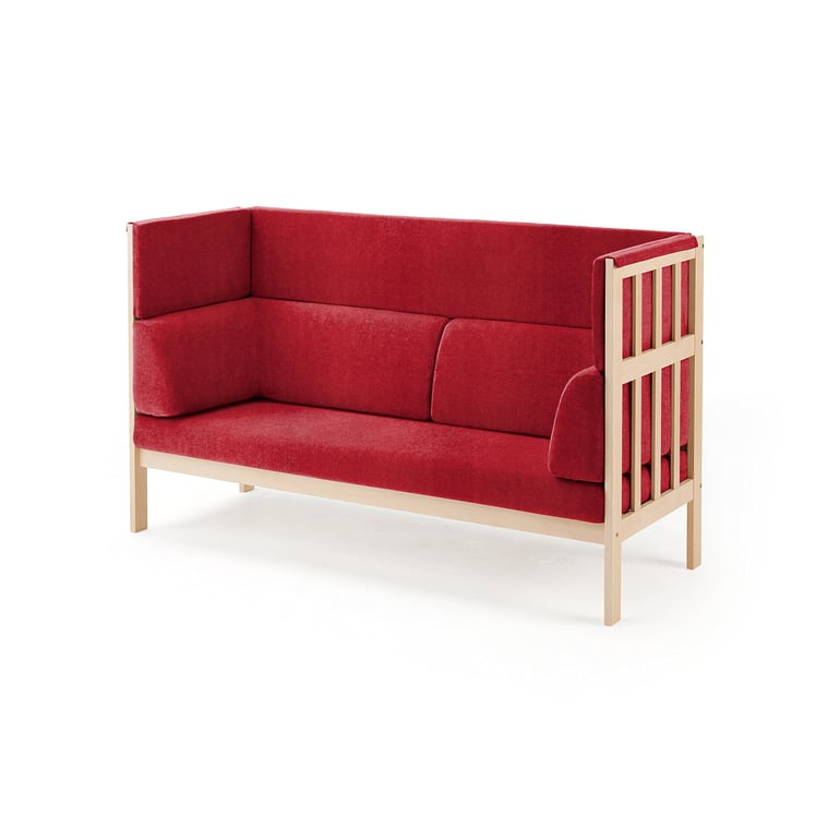 Miękko wyściełane oparcia i tapicerka z tkaniny pochłaniają dźwięki z otoczenia i zapewniają prywatność. Wszystko razem czyni naszą sofę doskonałym miejscem na prywatną rozmowę, spotkanie lub relaks z książką czy gazetą.