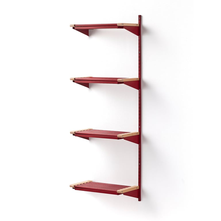 Moduł dodatkowy do systemu regałów na buty JEPPE. Jeden słupek ścienny i półki z rur z ociekaczami. Wymaga modułu podstawowego. Rozbuduj swój stojak na buty JEPPE za pomocą tego dodatkowego elementu z malowanej blachy!