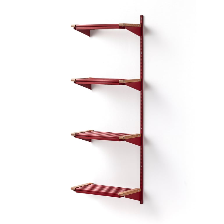 Stojak na obuwie JEPPE, 4 półki, moduł dodatkowy, 1790x600x310 mm, czerwony/dąb