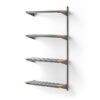 Moduł dodatkowy jest wyposażony w jeden słupek ścienny, na którym należy zahaczyć boczne krawędzie półki. Z drugiej strony półki należy zawiesić na słupku modułu podstawowego. Perforacja na słupkach pozwala umieścić półkę na dowolnej wysokości.