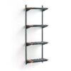 Półki wykonane z rur stalowych o okrągłym przekroju z elementami z drewna dębowego. Konstrukcja z rur stalowych zapobiega gromadzeniu się kurzu i brudu na półkach. Pod półkami praktyczne ociekacze, które zbierają wodę i śnieg, ułatwiając sprzątanie.