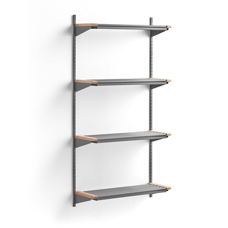 Regał do szatni z półkami na obuwie. Dwa słupki ścienne i półki z rur stalowych z ociekaczami. Można dokupić moduł dodatkowy i wiele akcesoriów. Seria JEPPE to regały do szatni z możliwością rozbudowy. Idealne do szkół i przedszkoli. Seria pozwala łatwo stworzyć funkcjonalną i przemyślaną szatnię w szkole lub przedszkolu.