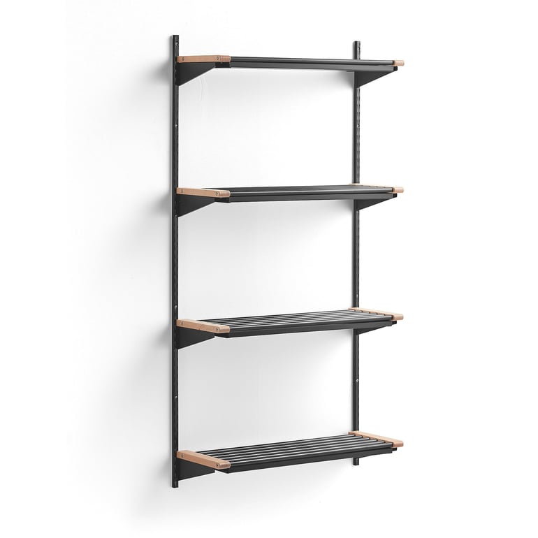Prezentowany lakierowany moduł podstawowy zapewnia mnóstwo miejsca na obuwie. System regałów oszczędza przestrzeń i łatwo go dostosować do potrzeb dla optymalnego przechowywania. Perforacja na słupkach ściennych pozwala umieścić półki na dowolnej wysokości.