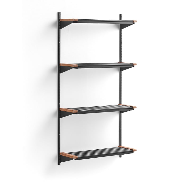 Prezentowany lakierowany moduł podstawowy zapewnia mnóstwo miejsca na obuwie. System regałów oszczędza przestrzeń i łatwo go dostosować do potrzeb dla optymalnego przechowywania. Perforacja na słupkach ściennych pozwala umieścić półki na dowolnej wysokości.