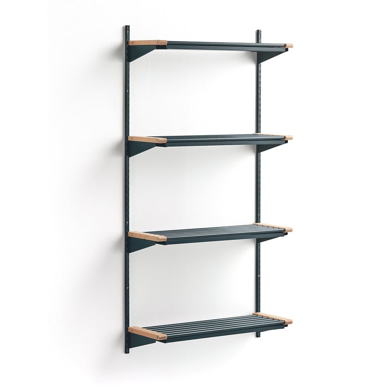 Regał do szatni z półkami na obuwie. Dwa słupki ścienne i półki z rur stalowych z ociekaczami. Można dokupić moduł dodatkowy i wiele akcesoriów. Seria JEPPE to regały do szatni z możliwością rozbudowy. Idealne do szkół i przedszkoli. Seria pozwala łatwo stworzyć funkcjonalną i przemyślaną szatnię w szkole lub przedszkolu.